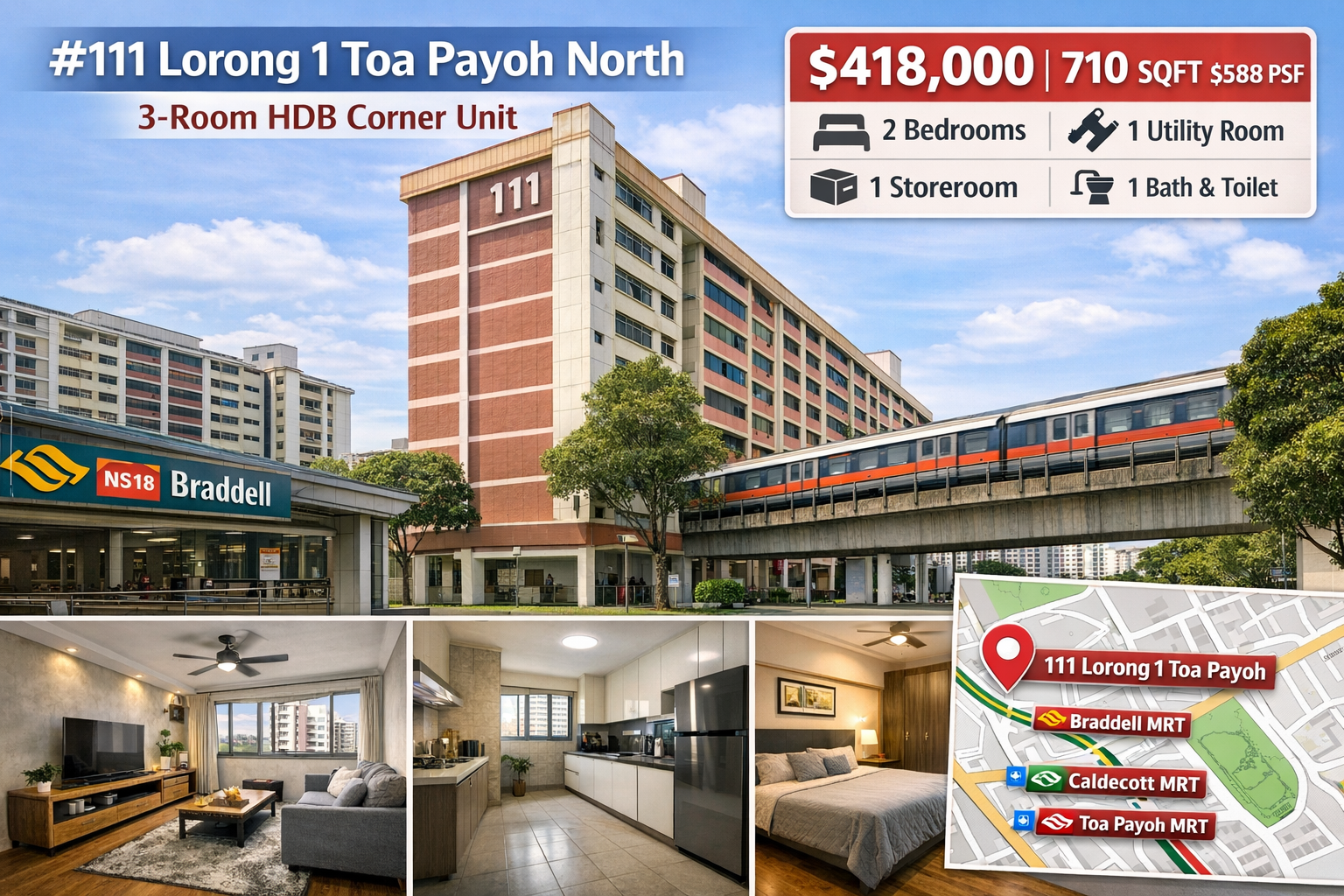 Finding the perfect property in Singapore that balances affordability, convenience, and comfort can be challenging, especially in mature estates like Toa Payoh. However, this 3-room HDB unit at 111 Lorong 1 Toa Payoh North presents an exceptional opportunity for homeowners and investors alike. Priced at $418,000 with a size of 710 sqft and a competitive rate of $588.73 psf, this property stands out as a highly attractive option in the Toa Payoh property market.