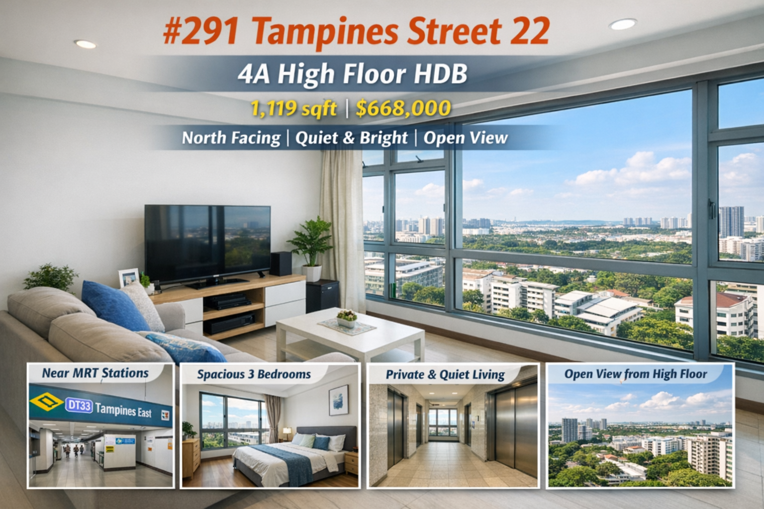For buyers searching for a 4A high floor HDB for sale in Tampines, this unit at 291 Tampines Street 22 offers an exceptional blend of space, comfort, strategic location, and long-term value. With its north-facing orientation, open view, proximity to MRT stations, and comprehensive amenities, it stands out as a highly attractive opportunity in the Tampines resale market.