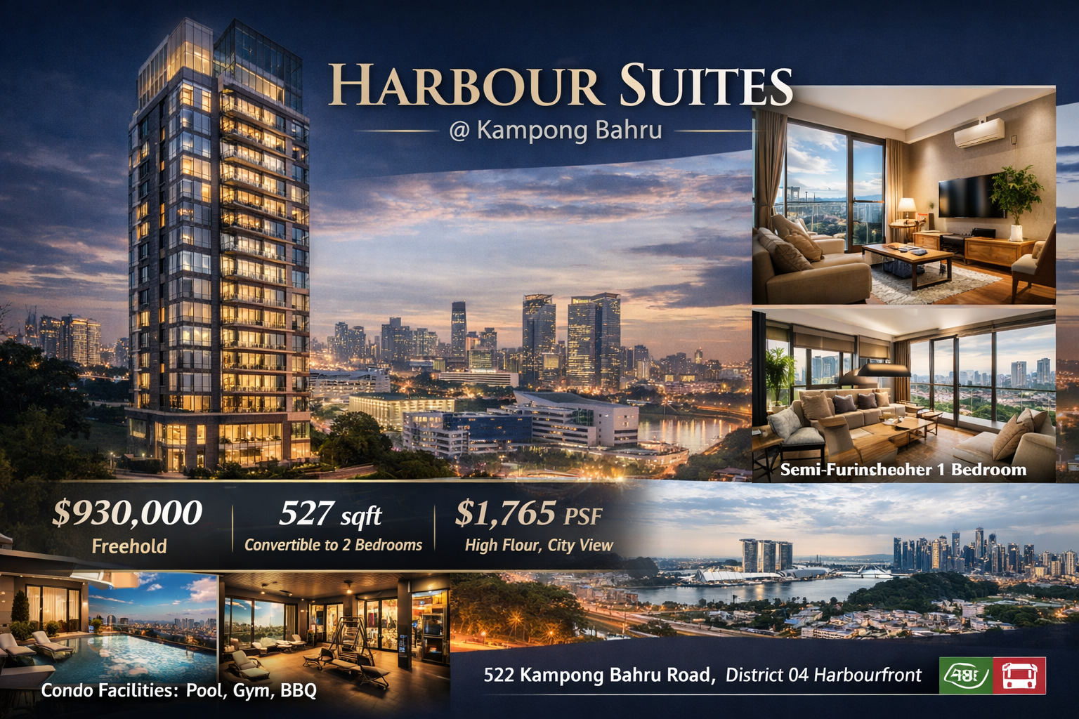 In the heart of Singapore’s rapidly evolving property market, Harbour Suites @ Kampong Bahru stands out as a freehold condominium offering a strategic location, strong investment potential, and modern urban living. Priced at $930,000, with a size of 527 sqft and $1,765 psf, this unit presents an excellent opportunity for investors and first-time homebuyers seeking a premium property in District 04 Harbourfront / Telok Blangah.