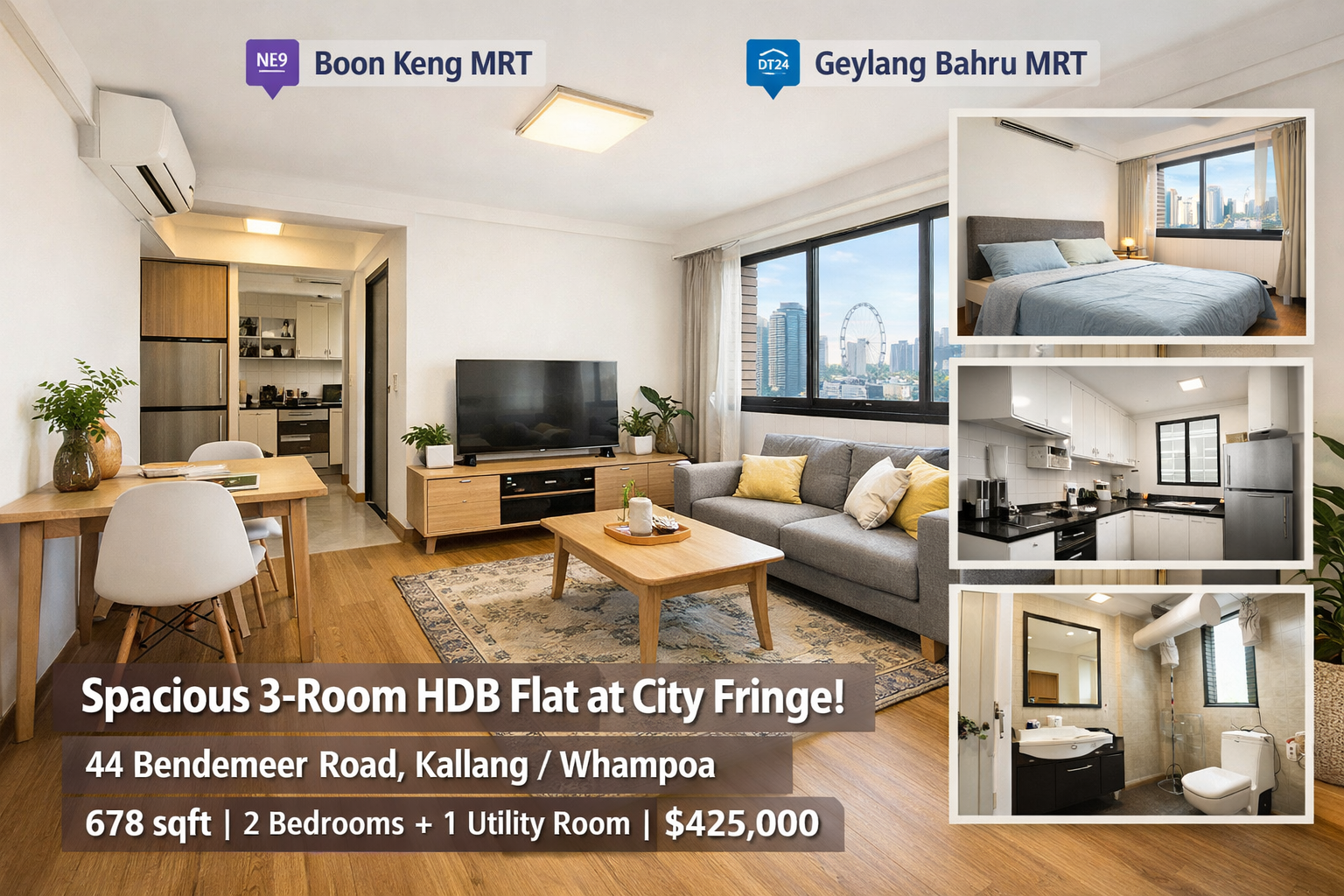 Finding the perfect home in Singapore can feel overwhelming, especially when you are searching for a spacious city fringe 3 room HDB flat that balances comfort, accessibility, and value. This property located at 44 Bendemeer Road offers a rare opportunity for buyers who are looking for an affordable yet strategically positioned home. With a price of $425,000 and a generous size of 678 sqft, this unit stands out as a compelling option for singles, couples, or small families seeking a vibrant lifestyle in the Kallang/Whampoa estate.