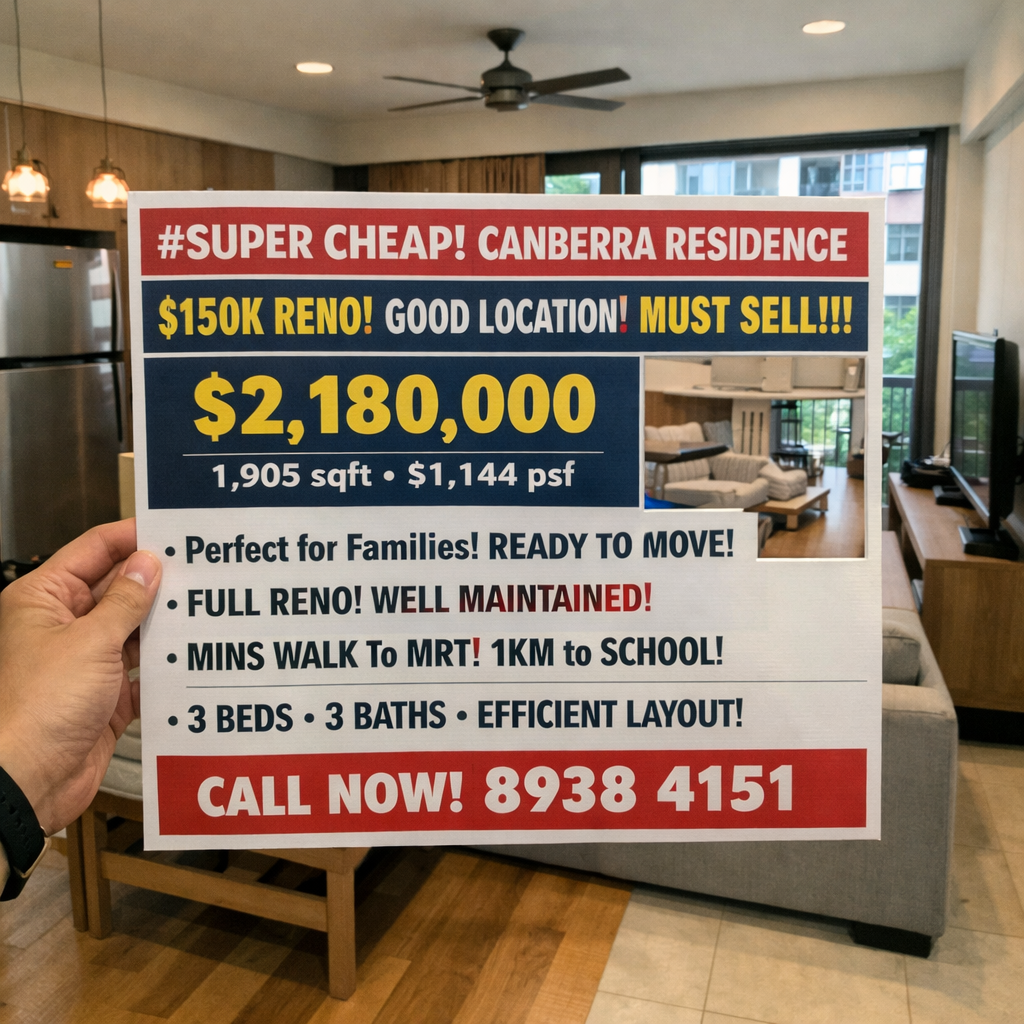In today’s competitive Singapore property market, finding a super cheap condominium unit with full renovation, good location, and immediate move-in condition is extremely rare. This is why Canberra Residences at 523 Canberra Drive, District 27 (Sembawang / Yishun), stands out as a true hidden gem. Priced at S$2,180,000, this spacious 1,905 sqft unit offers exceptional value at only S$1,144 psf, making it one of the most attractive listings in the northern region.